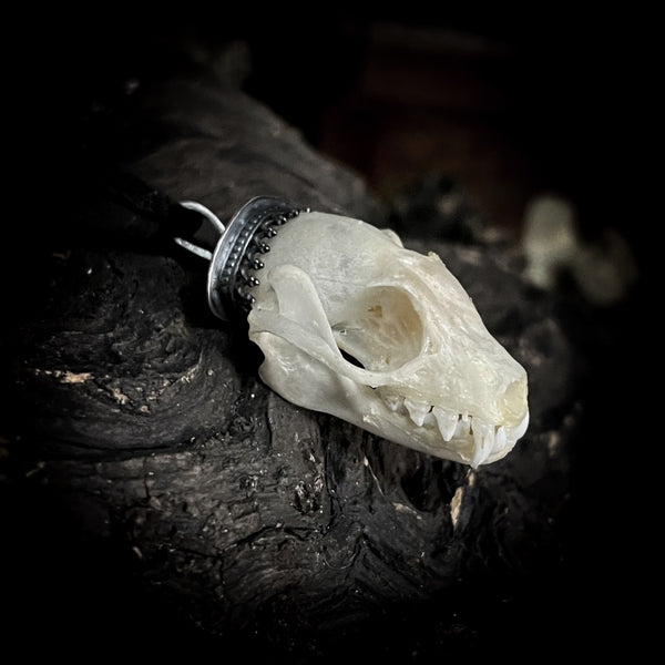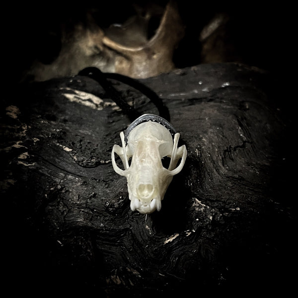 Genuine bat skull set in a gothic bezel, perfectly completes any macabre look.