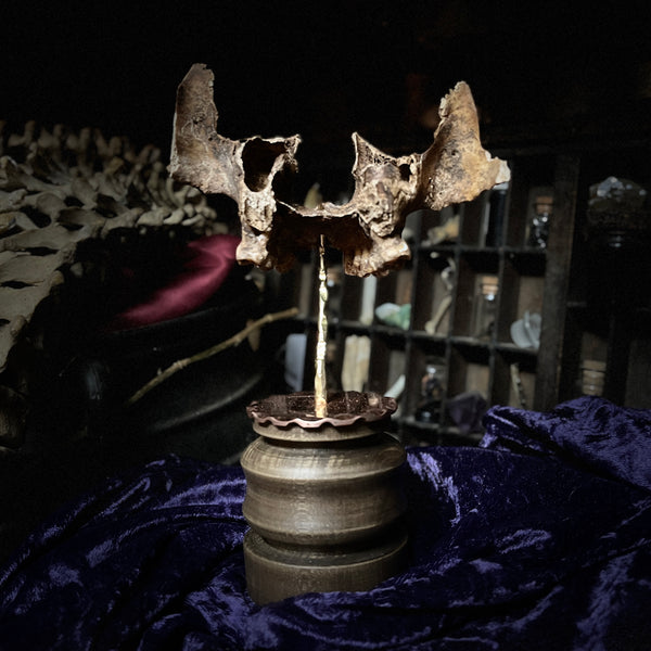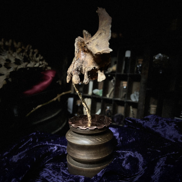 A real human maxilla mounted on a custom made display stand.