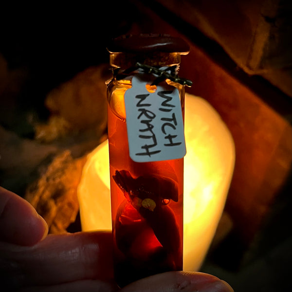 Witches wrath - broken skull, chilli pepper, pepper corns, Florida water, witch piss and fire agate. Meditate on and leave in the possession of your enemies.