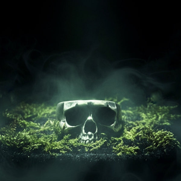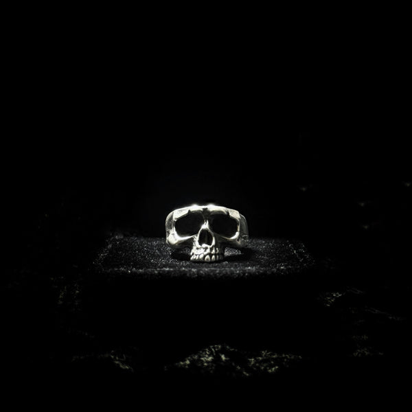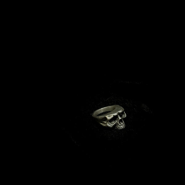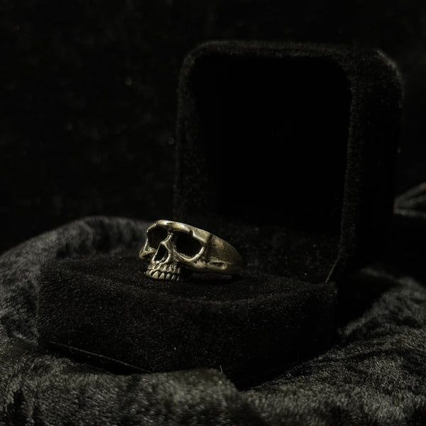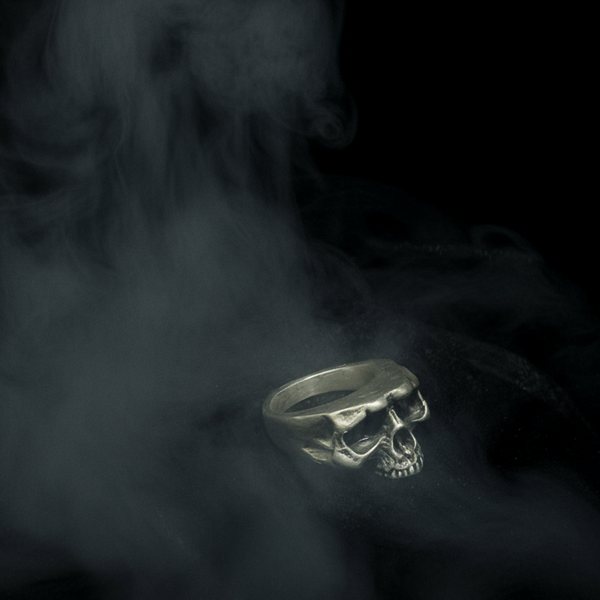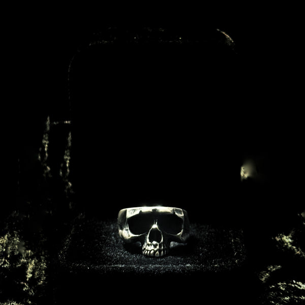 This ring has undergone the oxidation process to achieve a macabrely dark and worn look.