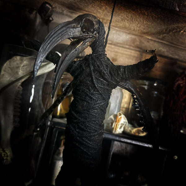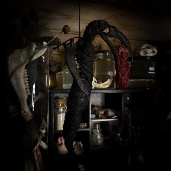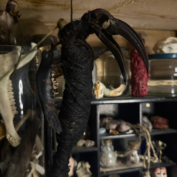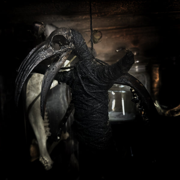 Luther was created from a hornbill skull, rabbit bones and a fox mandible for wings! Hanger attached so he can be displayed up high and fly at his forever home.